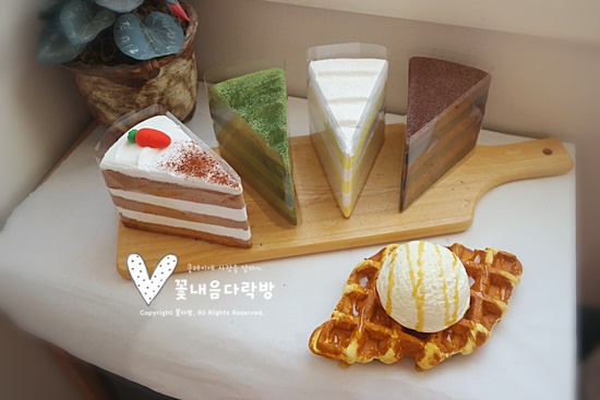 -카페디저트모형/조각케이크4종(당근, 녹차, 초코, 우유), 아이스크림크로플- 인천시 서구에 위치한 카페에...