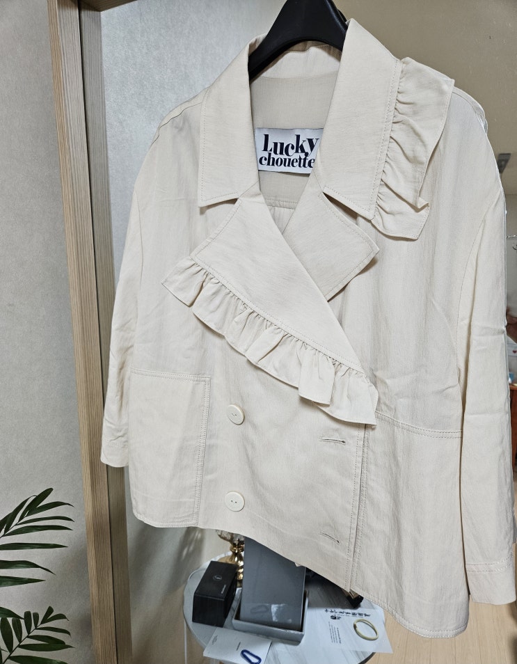 럭키슈에뜨 아이보리 러플 크롭자켓