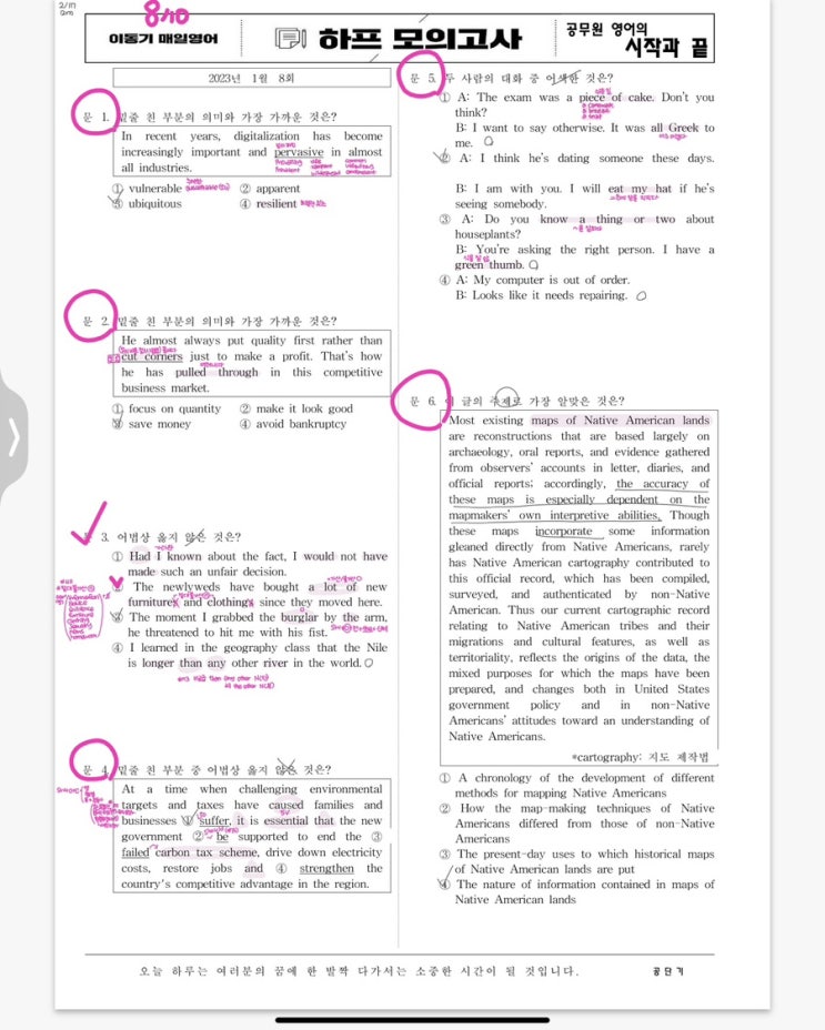 하프가 8번빼고는 수월한 문제였다고 하던데 9번을 틀린 나. 9번을 다시 뜯어보니 첫문장이 주제였고 ~와 ...