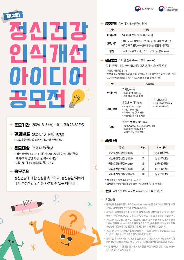 [공모전 소식] 보건복지부, 제2회 정신건강 인식개선 아이디어 공모전 (아이디어, 영상, 인쇄/옥외)