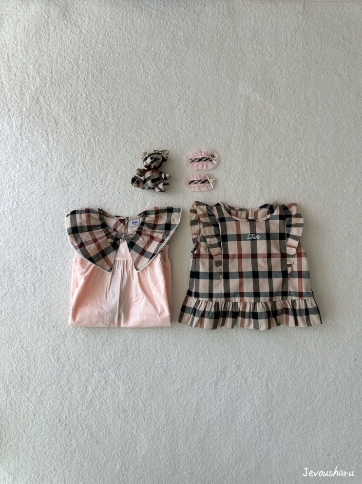 선물받은 등원룩 닥스베이비 베어프린트상하복 90 (착샷 및 키 체중)