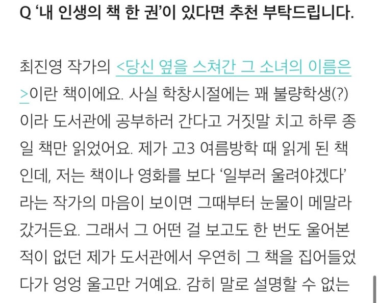 [오프라인 행사] 소설가 최진영 북토크 - <문학 주간> "가을을 위한 라이너 노트", 9/29(일) 17:00~18:30PM