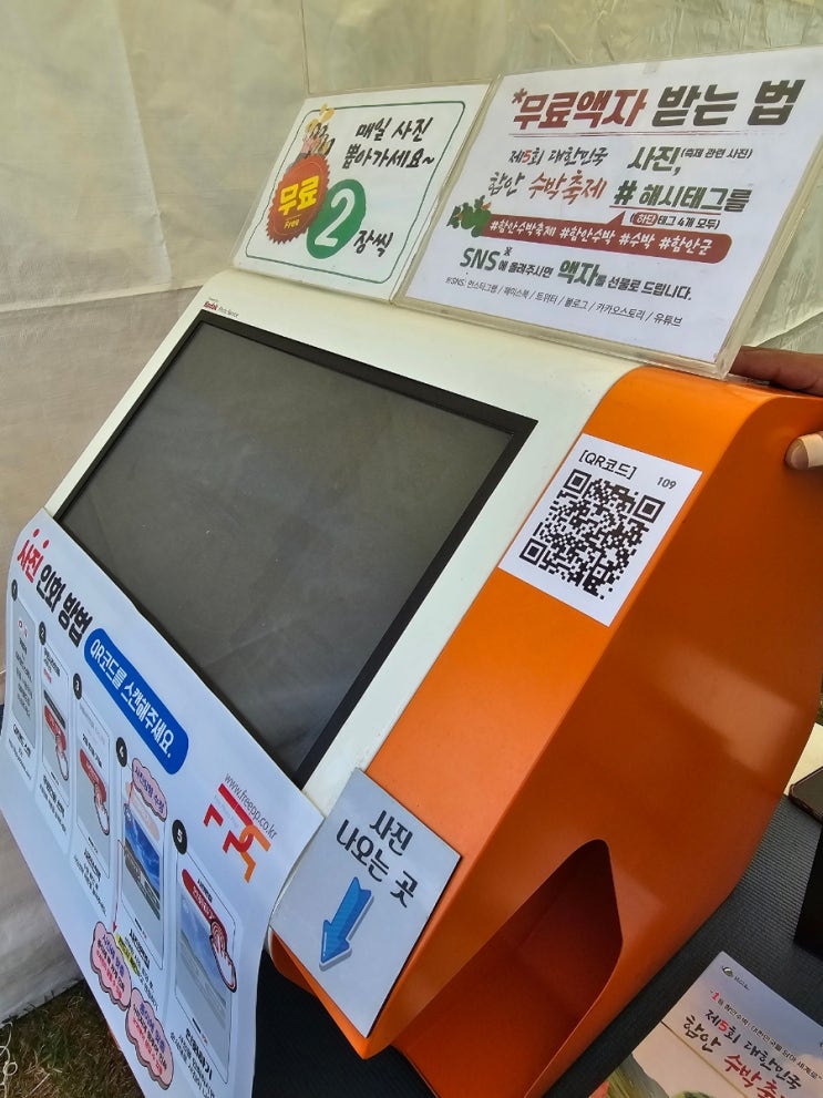 함안군민의 날, 수박 축제 이틀째~ 봉사활동 발대식 후 참여했는데 더워도 넘 더워ㅠ 그래도 사진인화기계...