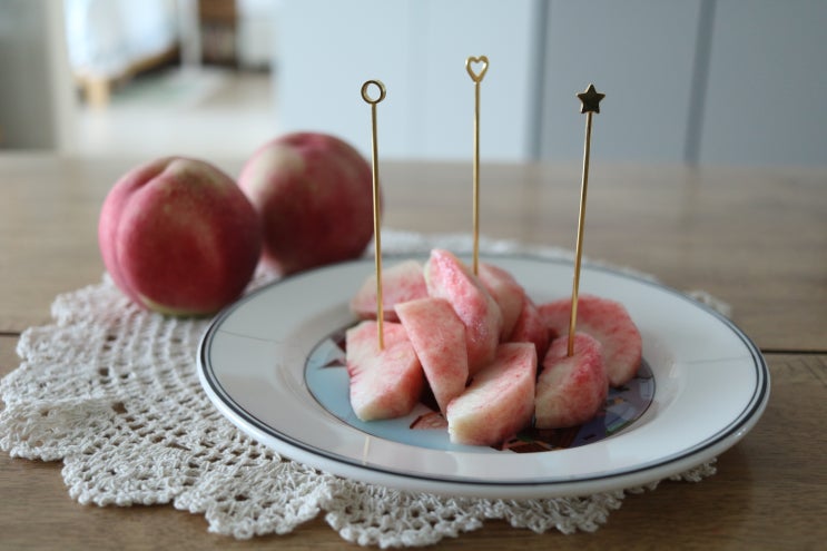 천도복숭아는 그냥 복숭아보다 좀 더 새콤한 맛으로 먹는다는 생각이 늘 있었다. 그렇듯 천도복숭아는 달달...