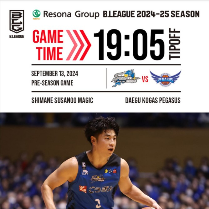 9월 13일 대구가스공사 페가수스 vs 시마네 susanoo magic 2. 9월 14일 울산현대모비스 vs 신슈 브레이브 ...