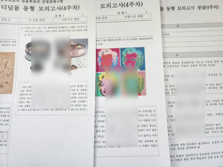 월요일 #최단미술 #임용 (5-6월) 디딤돌 동형 모의고사 4주차 동형 모의고사 4주차 동형모고는 종강 끝!!! ...