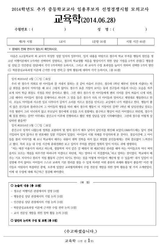 화요일 #구평회교육학 (3-6월) 기억<쏙> - 기출문제 풀이 11주차 2014 추가 중등 모의고사 교육학 공...