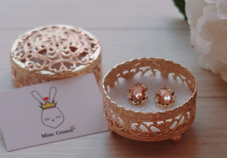 예쁜귀걸이 미스크라운 피치원석 블링블링 착용샷 후기