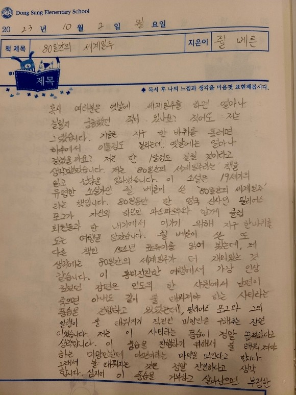 초등4 학년이 쓴 독서록 - 80일간의 세계일주
