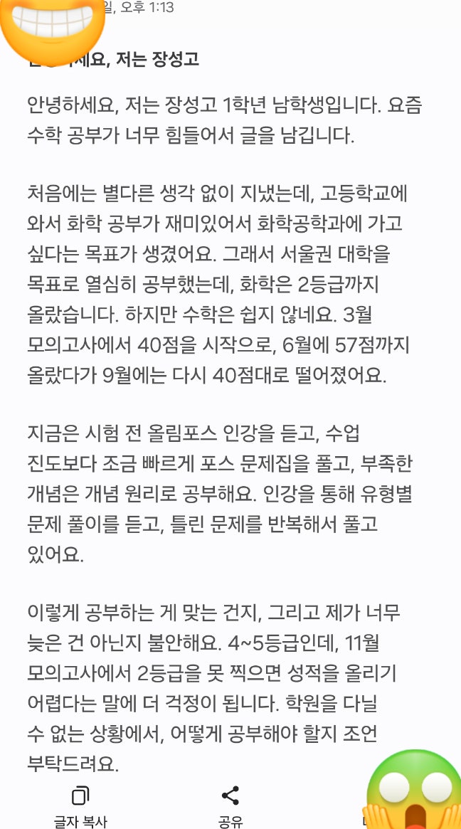 수학에 대한 흥미를 붙여주려고 사고력이다, 뭐다 해서 안 시켜준 게 없었어요. 하지만 단계가 올라갈 수록...