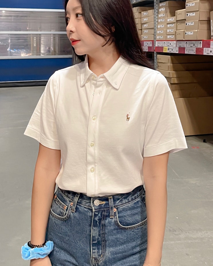 폴로 랄프로렌 반팔 니트 옥스포드 보이즈 셔츠 L 사이즈 여자 착샷