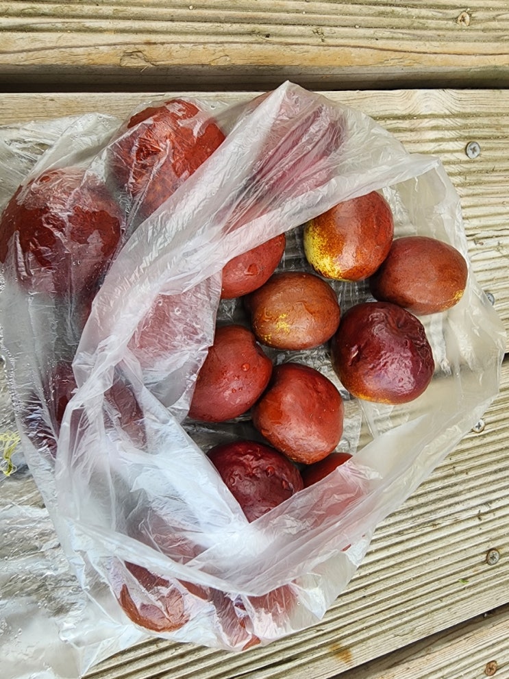 대추를 땄다 나무에서 완전히 붉은 대추는 벌레 먹었거나 곯은게 많아서 붉으스름한 좀 덜익은 대추를 땄다...