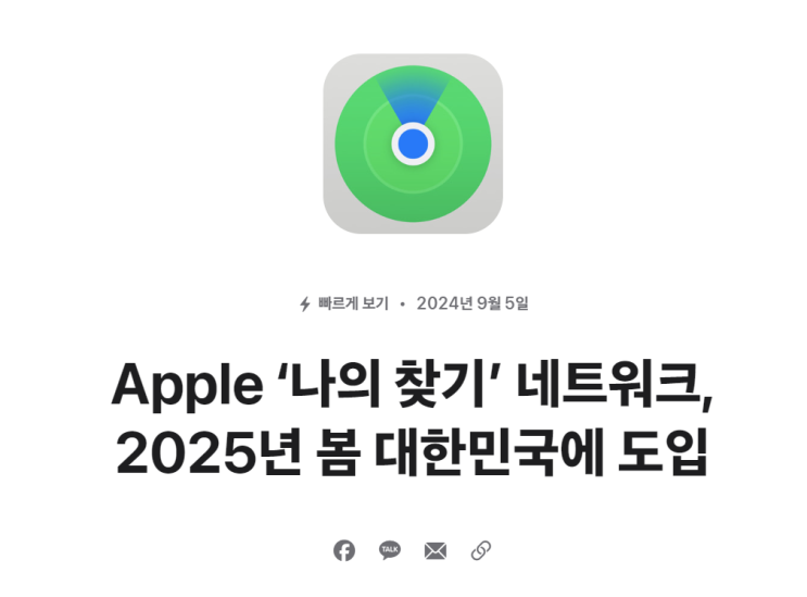 애플 나의찾기(Find My) 2025년 봄 대한민국 도입 기사