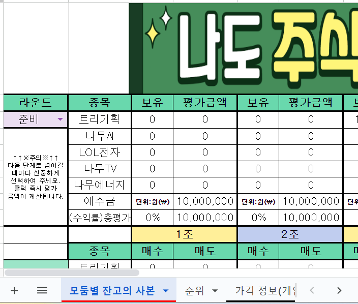 [경제수업, 자율활동]주식왕 게임(2023하반기편+주문서 자동 연동)