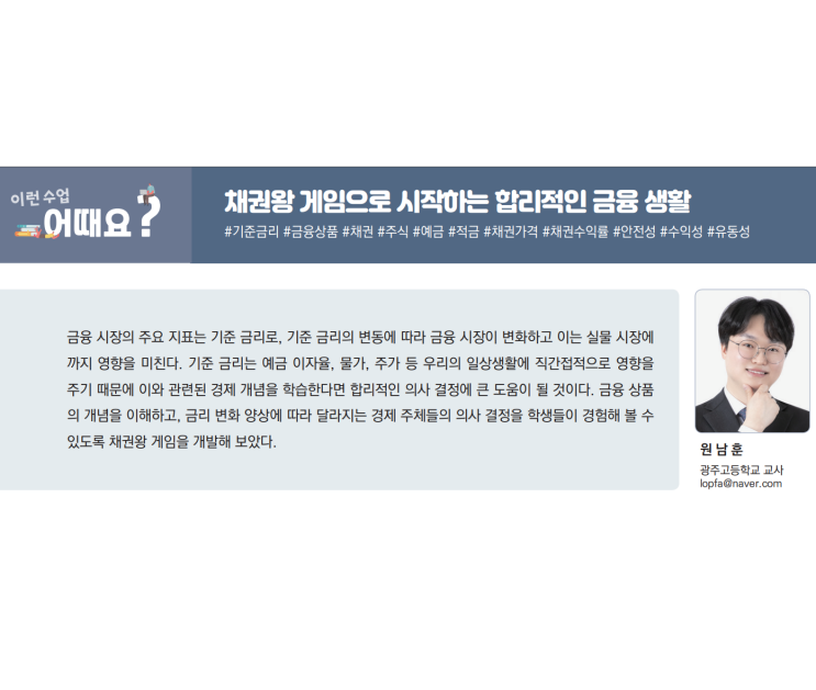 채권왕 게임으로 시작하는 합리적인 금융생활 제가 개발에 참여한 수업자료가 나왔습니다!! 자료 받기 기획...