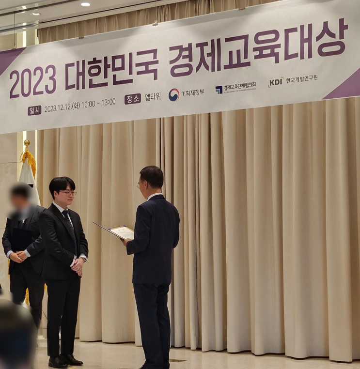2023 대한민국 경제교육대상 제가 올해 경제교육대상에서 교사부문(고등학교) 경제교육단체협의회 회장상을...