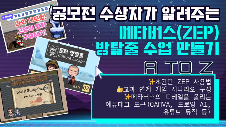 공모전 수상자가 알려주는 메타버스(ZEP) 방탈출 수업 만들기 A to Z 안녕하세요! 겨울방학 잘 보내고...