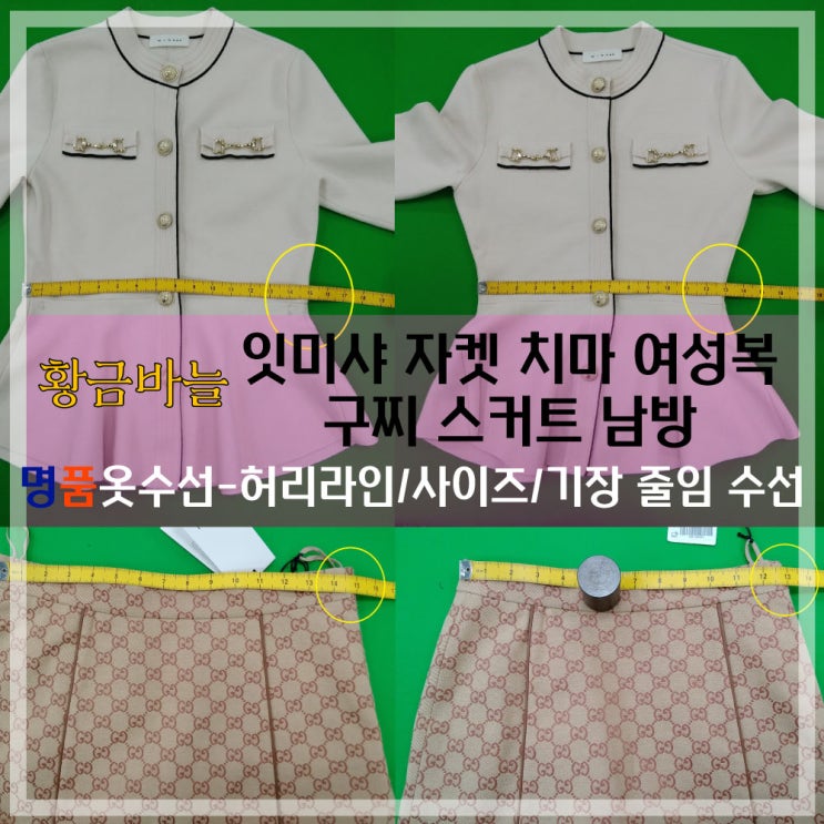 [명품옷수선] 잇미샤 구찌 자켓 스커트 남방 - 허리라인/사이즈/기장 줄임 수선