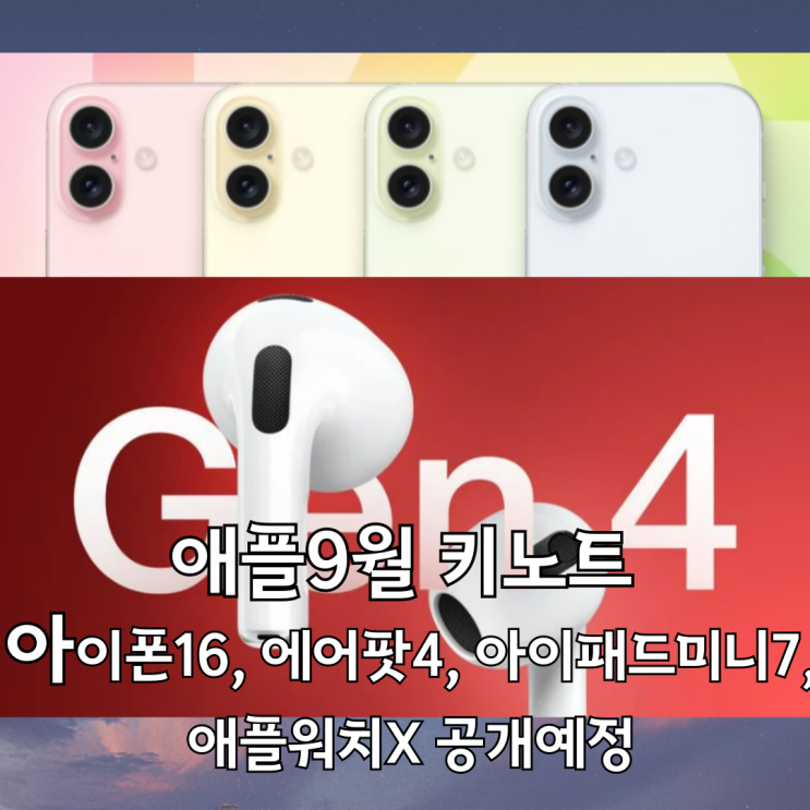 [애플] 애플9월 키노트(Keynote) 미리 살펴보기 (Iphone16, 애플워치X, 아이패드미니7, Airpod4)
