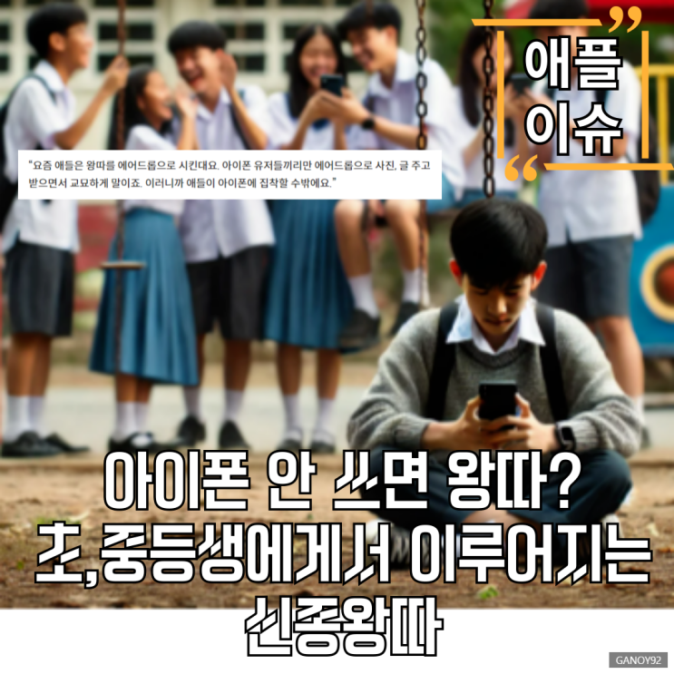 안녕하세요 IT블로거 가노이입니다. 최근 초등학생과 중학생들 사이에서 아이폰 사용 여부가 또래 집단 ...
