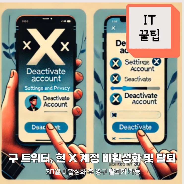 구 트위터(Twitter) 현 X 모바일로 계정 비활성화 및 30일 후 자동탈퇴 설정 하는 방법