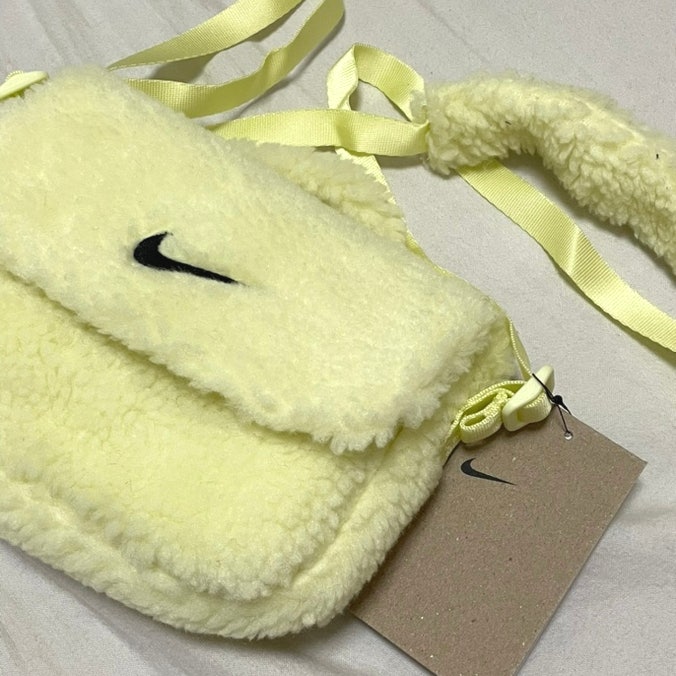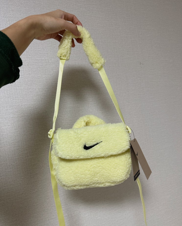 안녕하세요ㅎㅎ 유쮸쮸입니다! 오늘은 겨울 시즌 들기 좋은 나이키 미니백 뽀글이가방 FB3039-331 옐로우...
