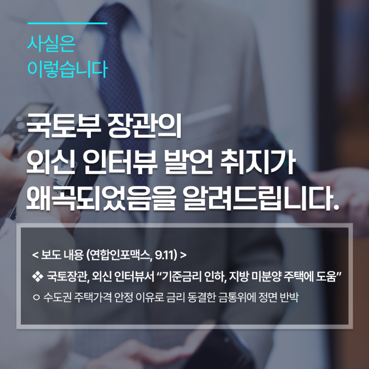 국토부 장관의 외신 인터뷰 발언 취지가 왜곡되었음을 알려드립니다.
