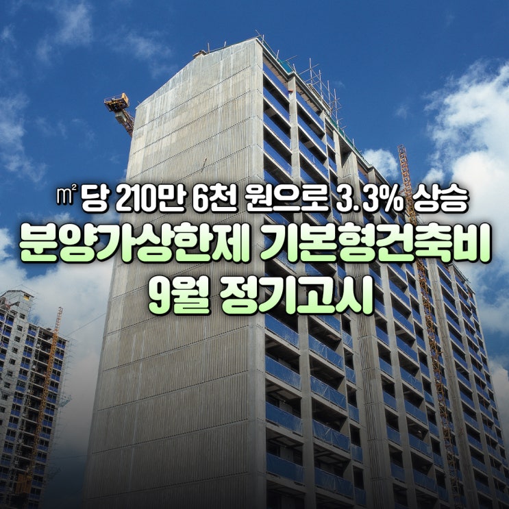 ㎡당 210만 6천 원으로 3.3% 상승, 분양가상한제 기본형건축비 9월 정기고시