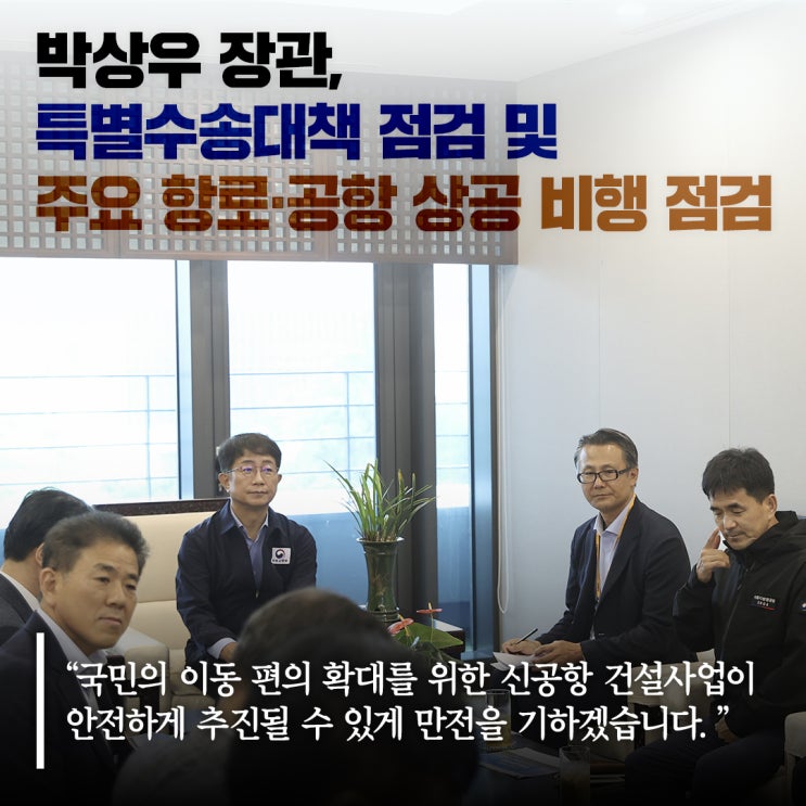 박상우 장관, 특별수송대책 점검 및 주요 항로·공항 상공 비행 점검
