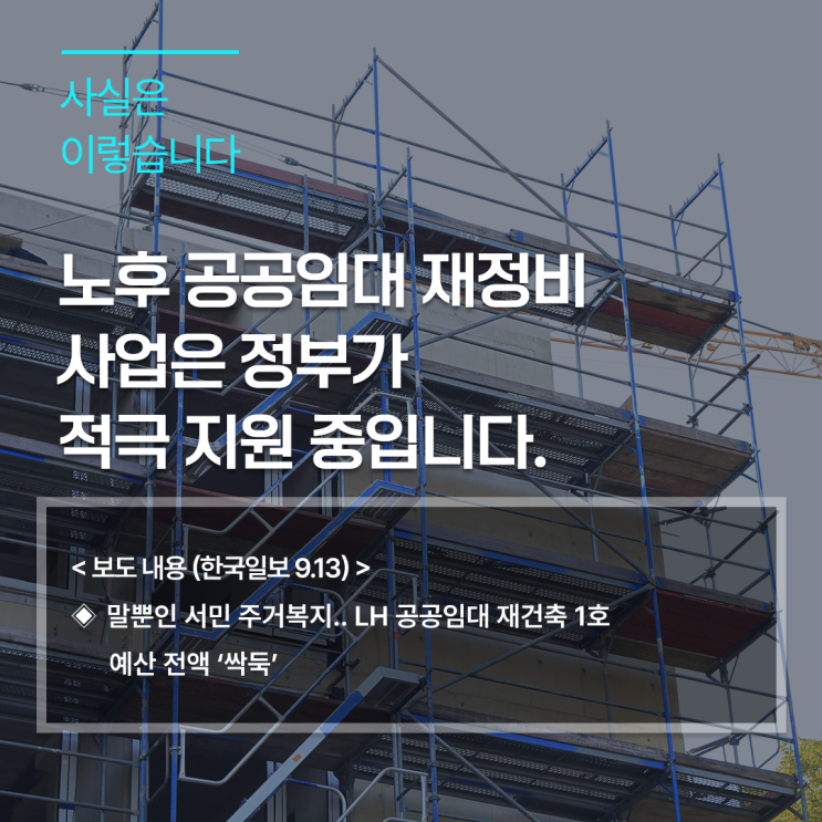 노후 공공임대 재정비 사업은 정부가 적극 지원 중입니다.