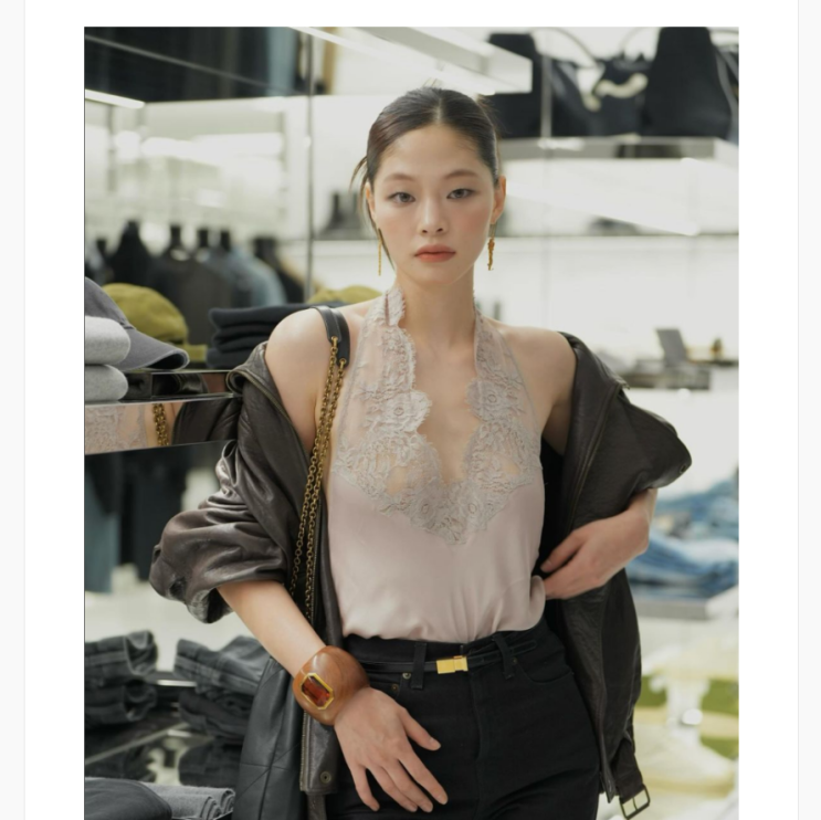 여자 오버핏 가죽 자켓 코디 윤이재 명품 입생로랑 보머 자켓 & 가방 제이미백 가격은?