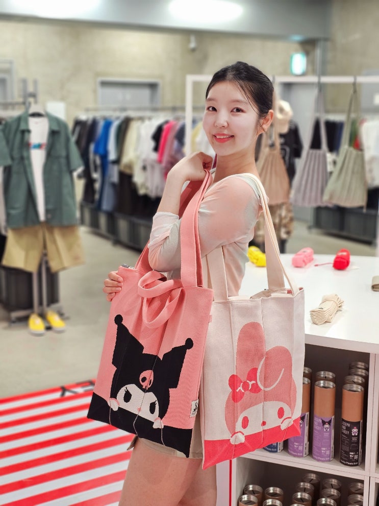 헬로키티 조셉앤스테이시 산리오캐릭터즈 가방 콜라보 무신사 홍대 팝업스토어에서 착용해보기