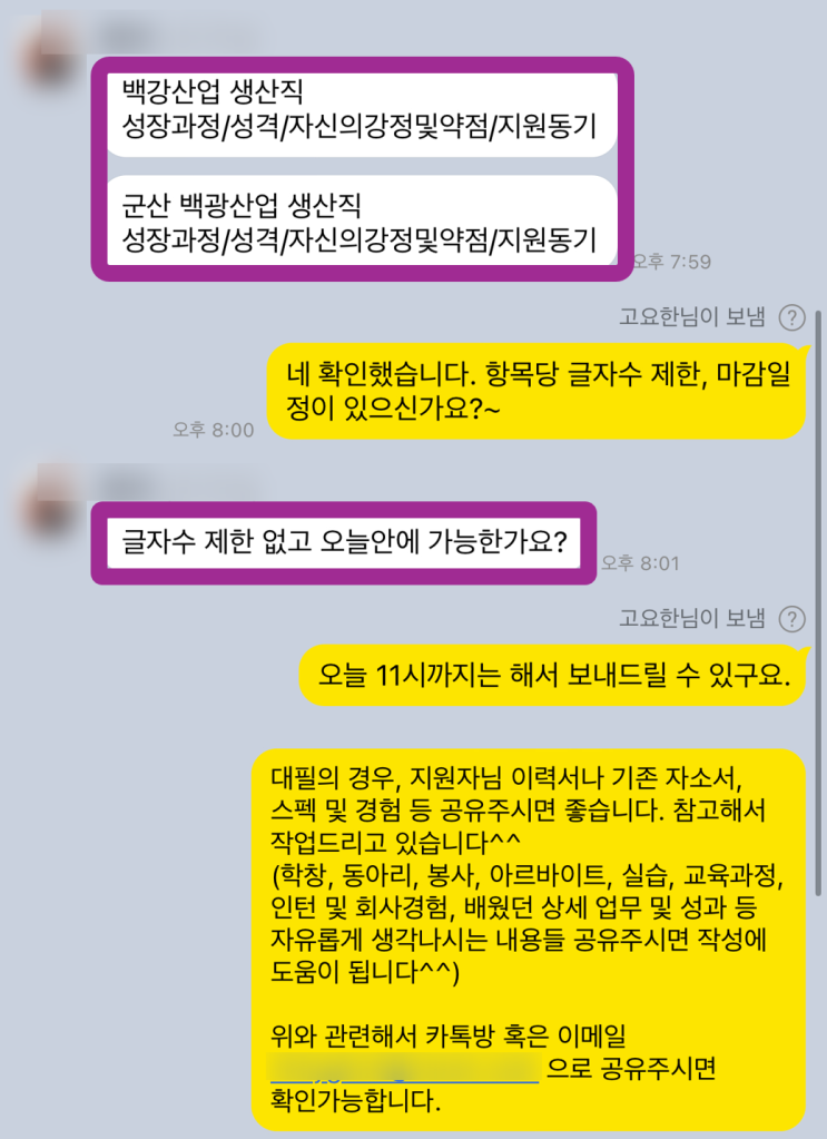대기업 중견기업 생산직 자소서 합격하는 방법 공유, 백광산업에 지원하시는 분 자소서 대필 진행