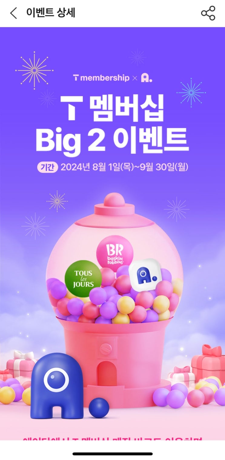 SK T멤버십 사용자이시라면? T멤버십 어플에 들어가면 이벤트로 팝업창이 뜨는데 Big 2이벤트가 9월 3...