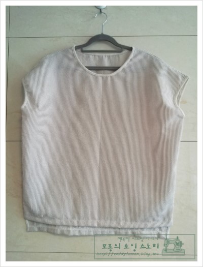 베이지 플라세 원단으로 어깨처짐 티셔츠를 만들었어요~ 원단에 대해 아직 잘 모르는 모종.....