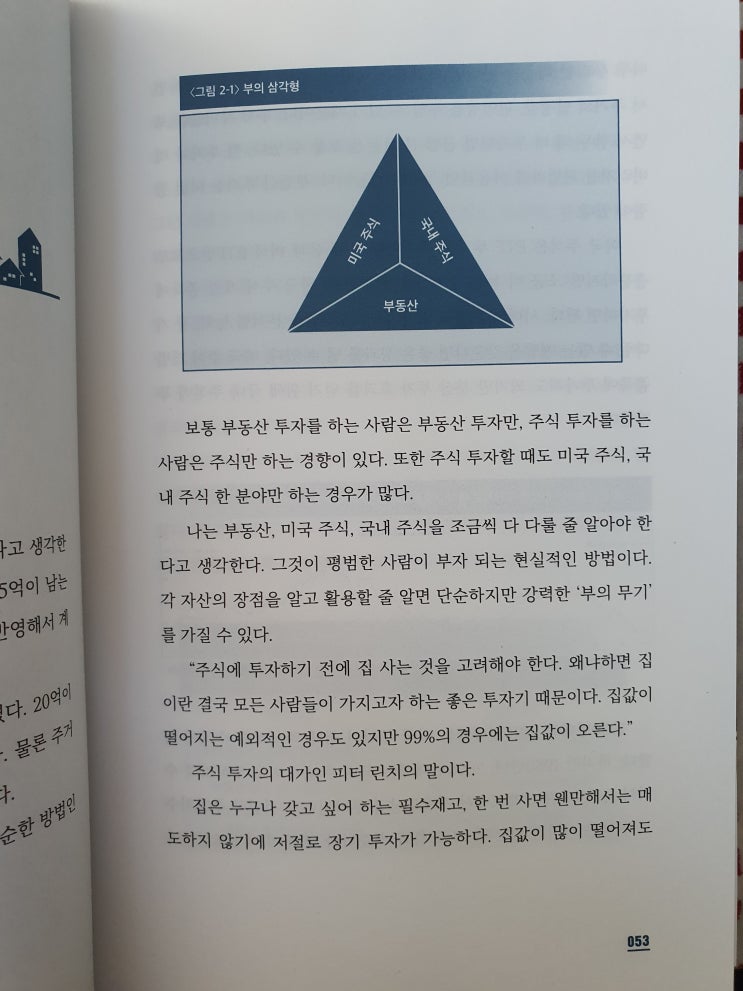 부동산, 미국ETF, 한국우량주식, 의 3방향 투자를 권한다. 너무 무리하지 않으면서도 탄탄한 투자의 지...