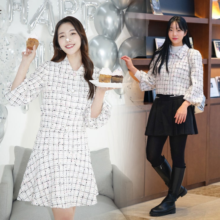 잇미샤 원피스 트위드 자켓 셋업 투피스 성해은 & 이나연 인스타 패션 여자 봄 하객룩 코디