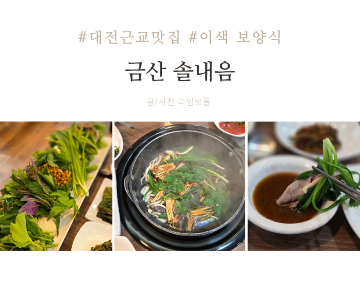 대전근교 맛집 솔내음 ? 대전근교 맛집을 찾다가 서대산 맛집으로 유명한 금산 솔내음을 알게 됐다. 대...