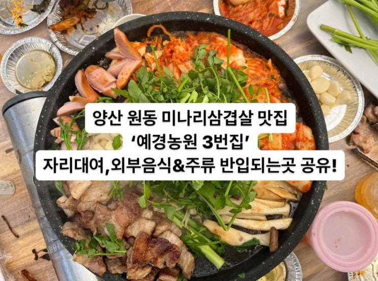양산 원동 미나리 삼겹살 맛집! 예경농원 3번집(자리대여, 외부음식&주류 반입가능한곳)원동 매화 축제