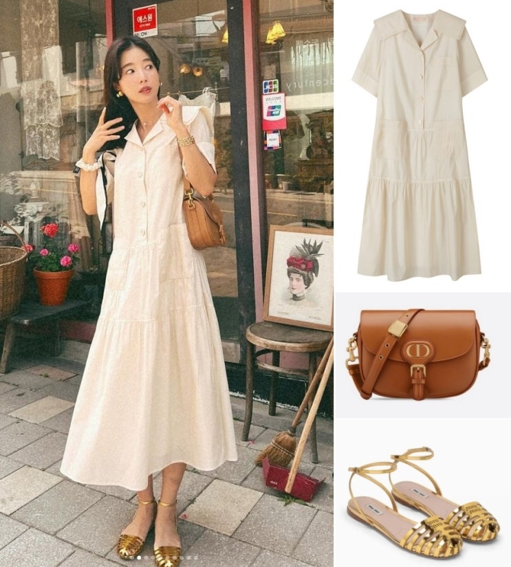 기은세 옷 여름 베이지 롱원피스 코디 씨씨콜렉트 디올 바비백 미우미우 여자샌들