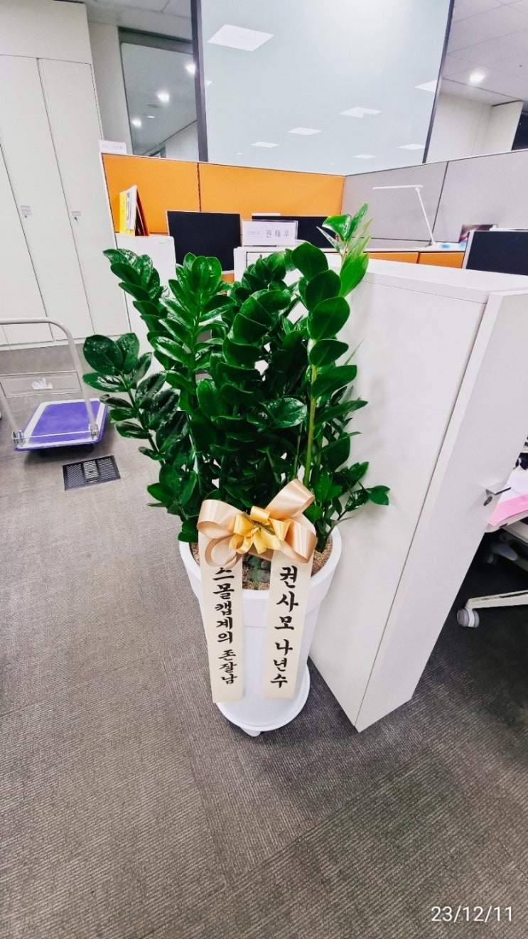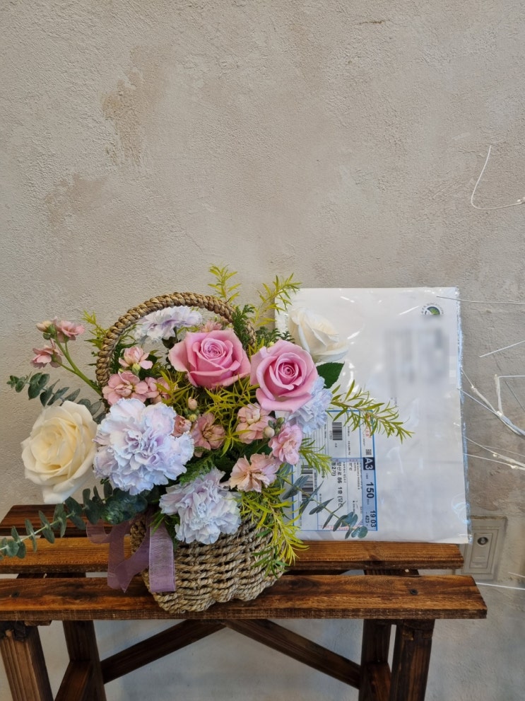 전시회 축하꽃바구니 오렌지빛꽃으로 구성 요청하셔서 풍성하게 제작해드렸어요^^ . . 위더스영등포 송년의...