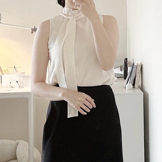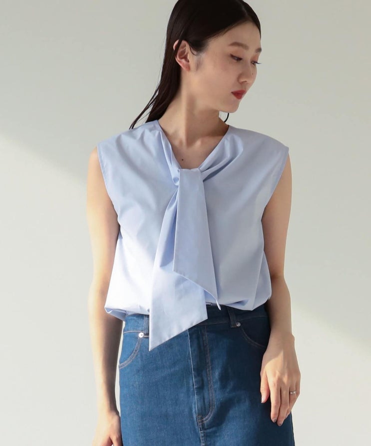 30%세일) 빔즈 리본타이 노슬리브 블라우스 / Demi-Luxe BEAMS