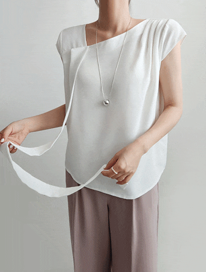 [위드마리] 실키 캡소매 타이 블라우스