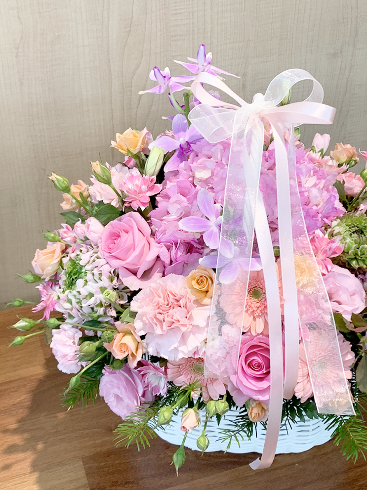 이화여대로 배달된 교수님 생신 꽃바구니 서양란 센터피스