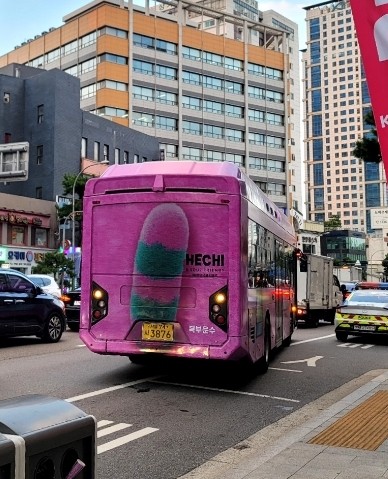 충무로에서 길을 걷다 난데없는 핑크버스에 깜짝 놀랐다. 이게 뭐야? 저 귀여운 캐릭터는 뭐야? 우왕 눈이...