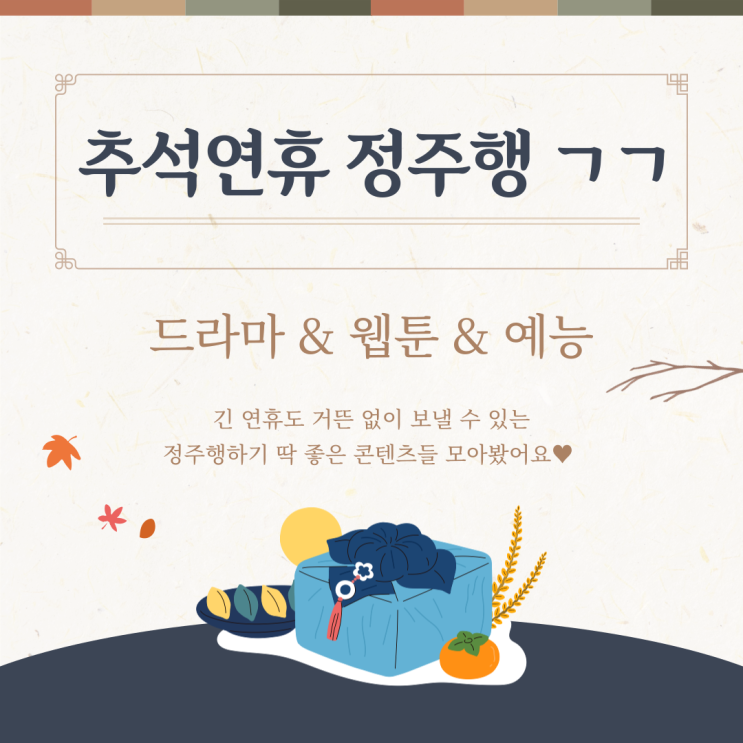추석 정주행 어때요? 내가 볼 드라마 예능 웹툰 콘텐츠 모음집 이번에 무려 연휴 5일..! 직장인들에게 꿀같...