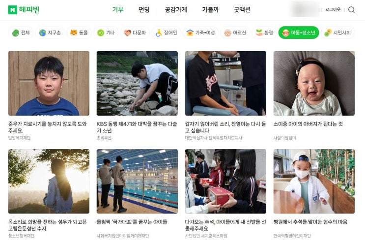 네이버해피빈 한달에 한번 기부하기 7세아이 기부하기 8월 기부완료 마음은 나누면 두배 잇님들, 안녕하세...
