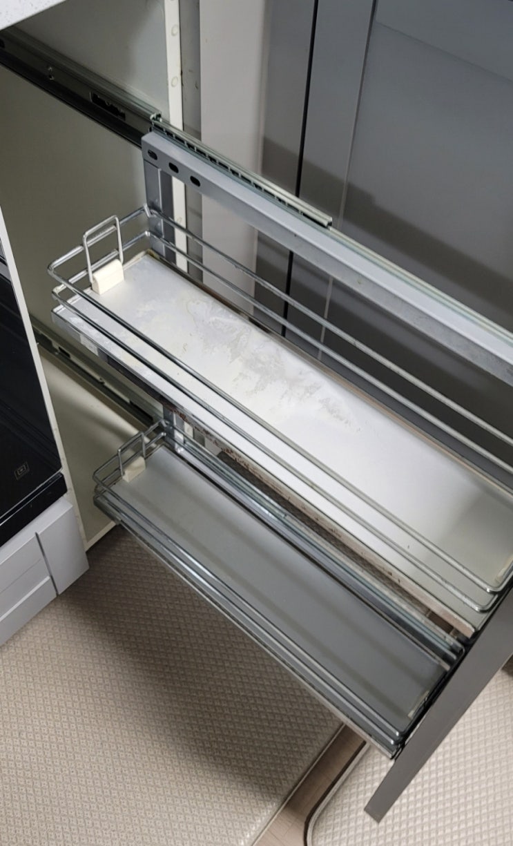 전주 효천우미2차 세대 싱크대 양념장 레일교체작업 입니다. 싱크대 양념장 서랍레일이 고장나 교체하는 작...