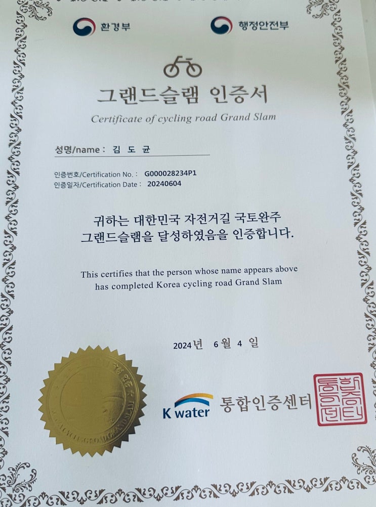 6월에 제주도를 마지막으로 자전거 국토완주를 했었고 그메달과 인증서가 8월에 왔었고 9월에 포스팅을 하...