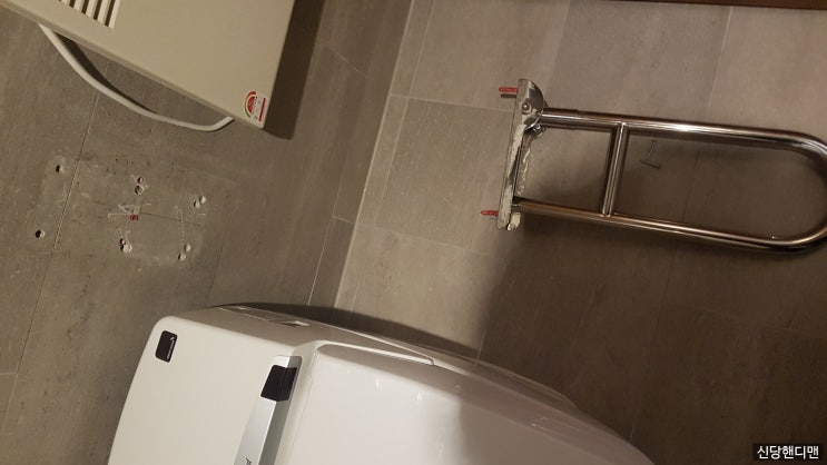 청담동에 있는 한 빌딩인데, 장애인 화장실에 있는 안전손잡이가 떨어졌답니다. 타격 앙카랑 함마 드릴이랑...